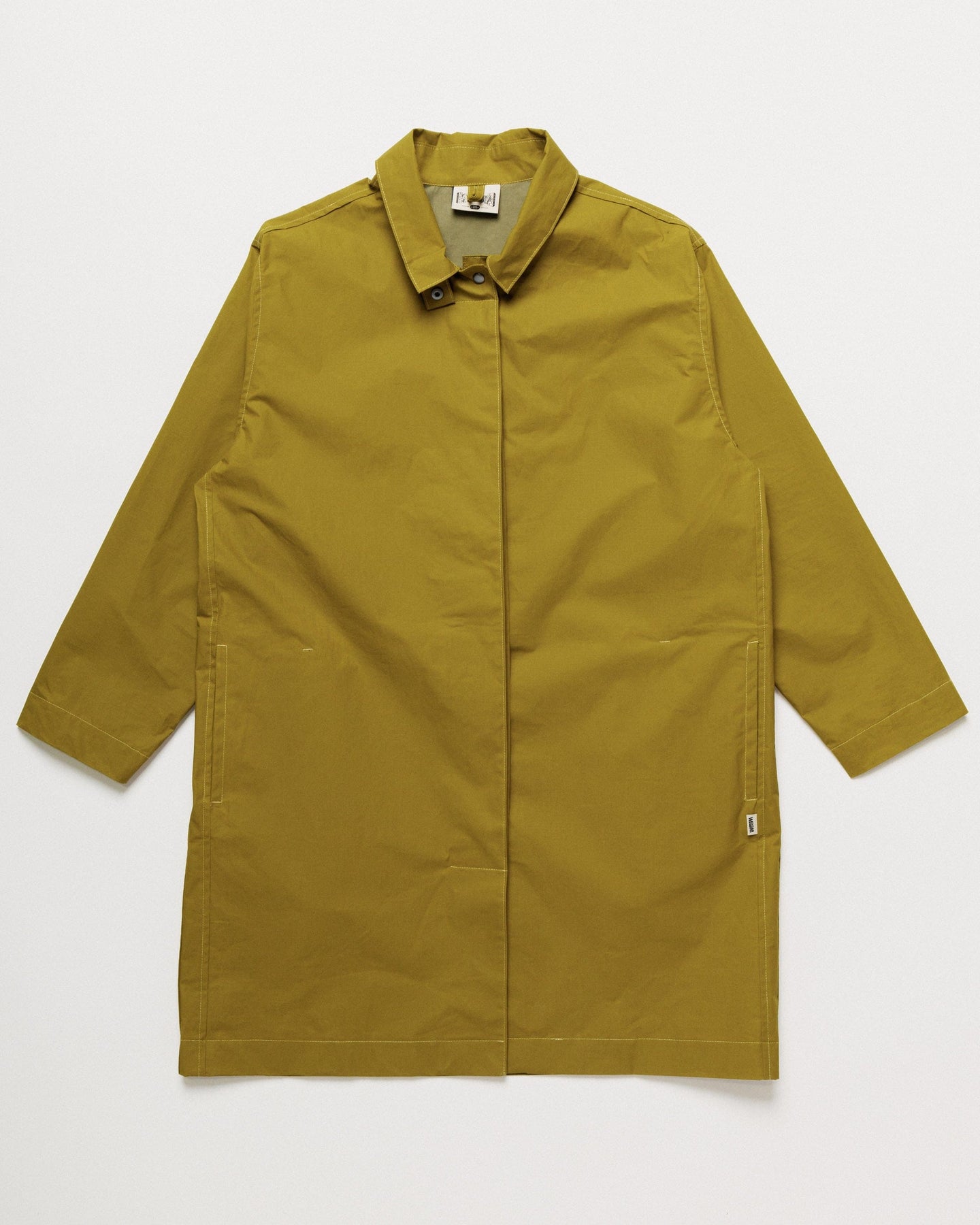 Crafted from organic Bio Nova waxed cotton by Halley Stevensons - specialists in weatherproof textiles since 1864 - this premium fabric features a bio-based, fluorocarbon-free (FCF) coating. The result is a breathable, lightweight mac with a subtle technical feel that keeps you dry in a shower without the bulk of a traditional waxed jacket.