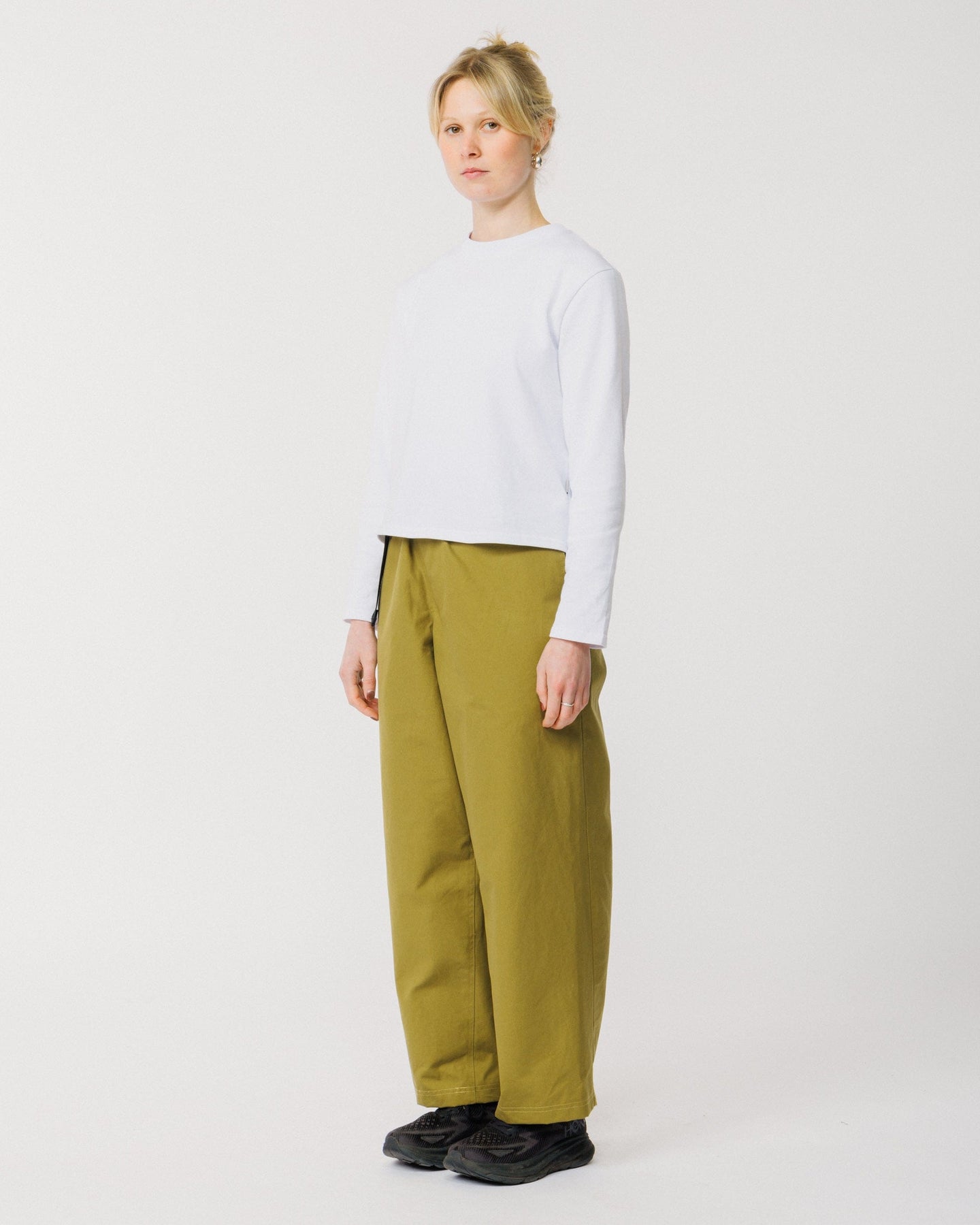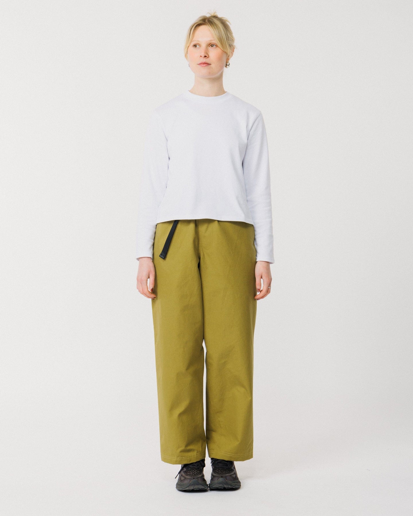 Crafted from cotton twill with a technical water-resistant finish, these pants are soft, structured, and effortlessly wearable. The wide leg silhouette and elasticated waistband create a relaxed, modern shape, while reinforced gussets ensure durability and enhanced ease of movement.