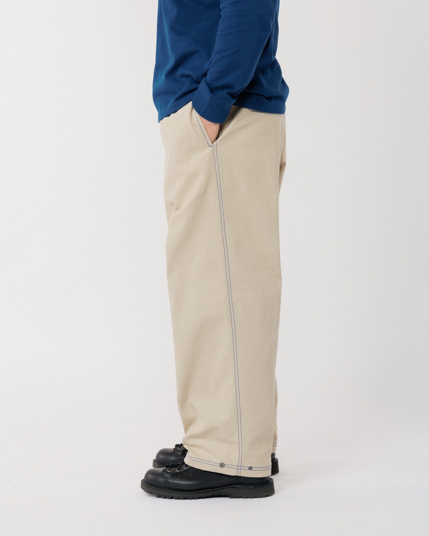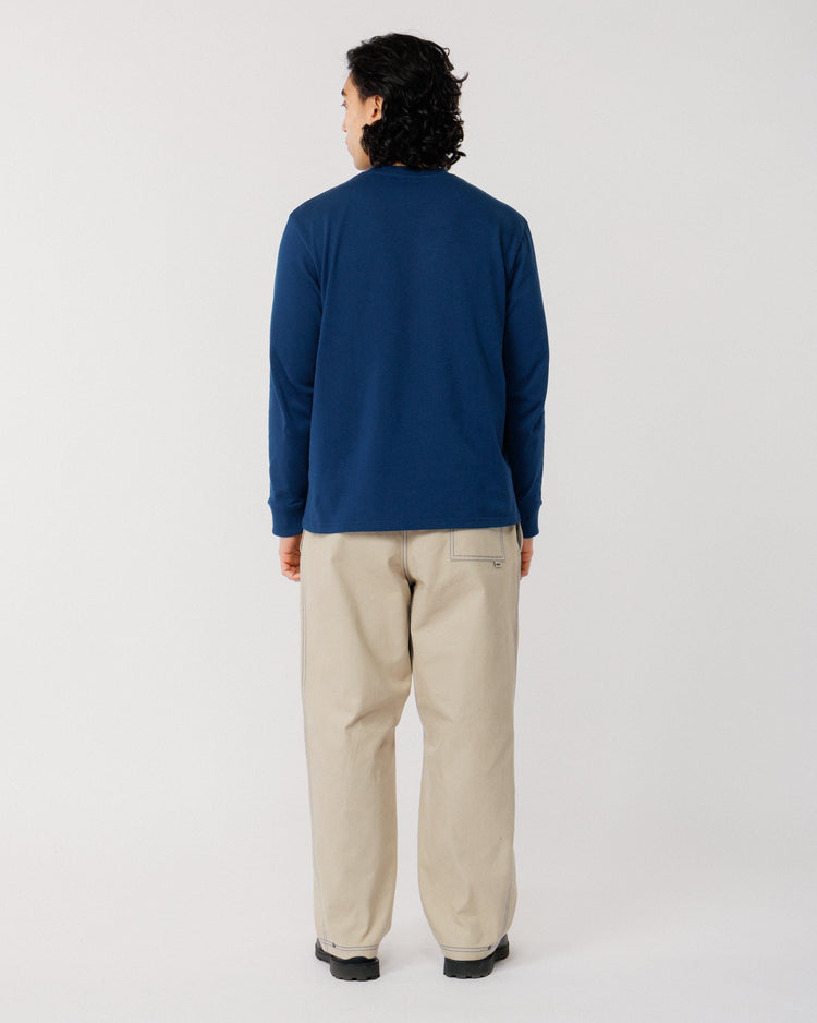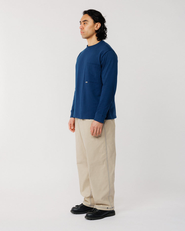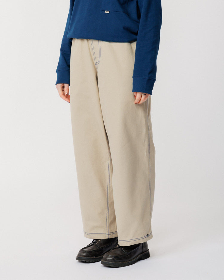 Our best-selling Zama Pants return with a subtle twist - refreshed in a contemporary stone canvas with cobalt blue contrast stitching that adds a standout edge to this everyday essential. Same signature fit, same durability, now with detailing that makes them pop.