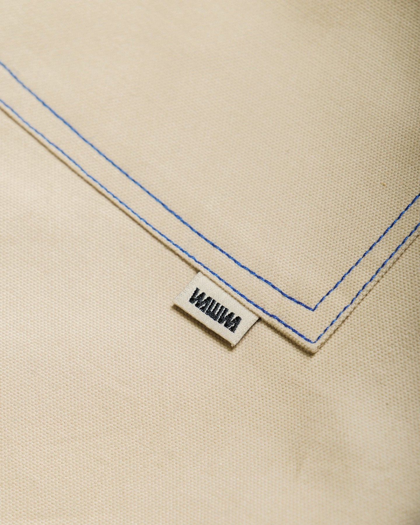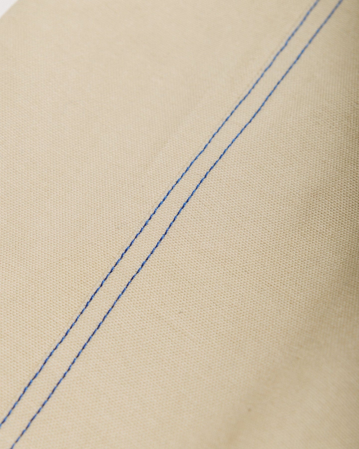 • Stone canvas with standout cobalt blue contrast stitching