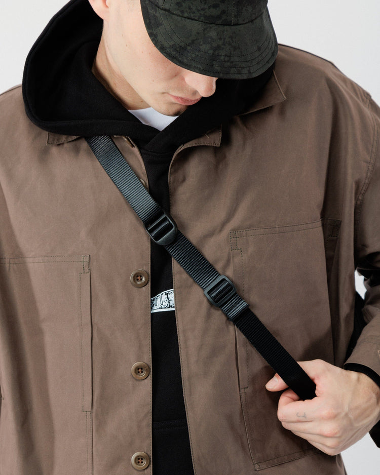 The adjustable strap is engineered for comfort and clean lines, with minimal hardware and no excess material. Branding is deliberately understated, allowing the bag's considered proportions and quality construction to speak for themselves.