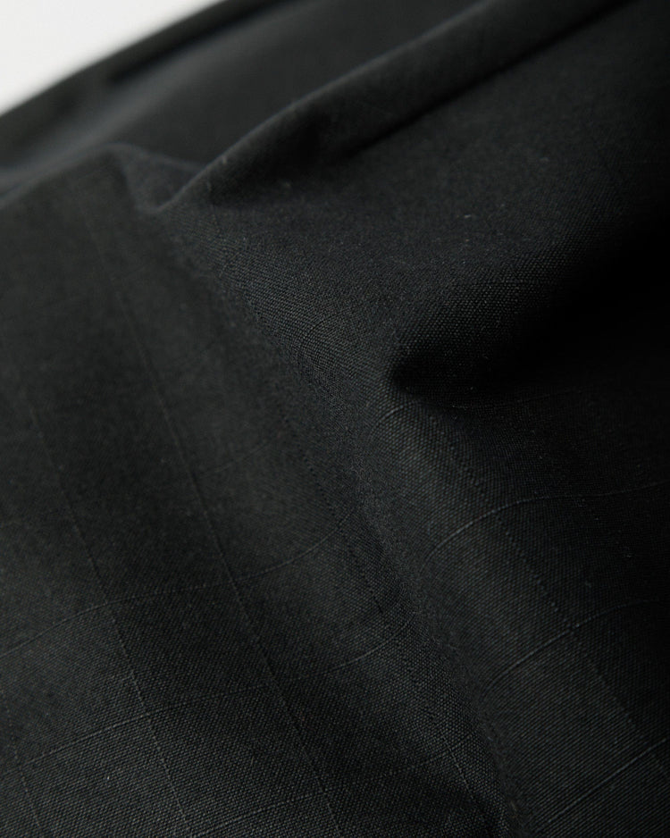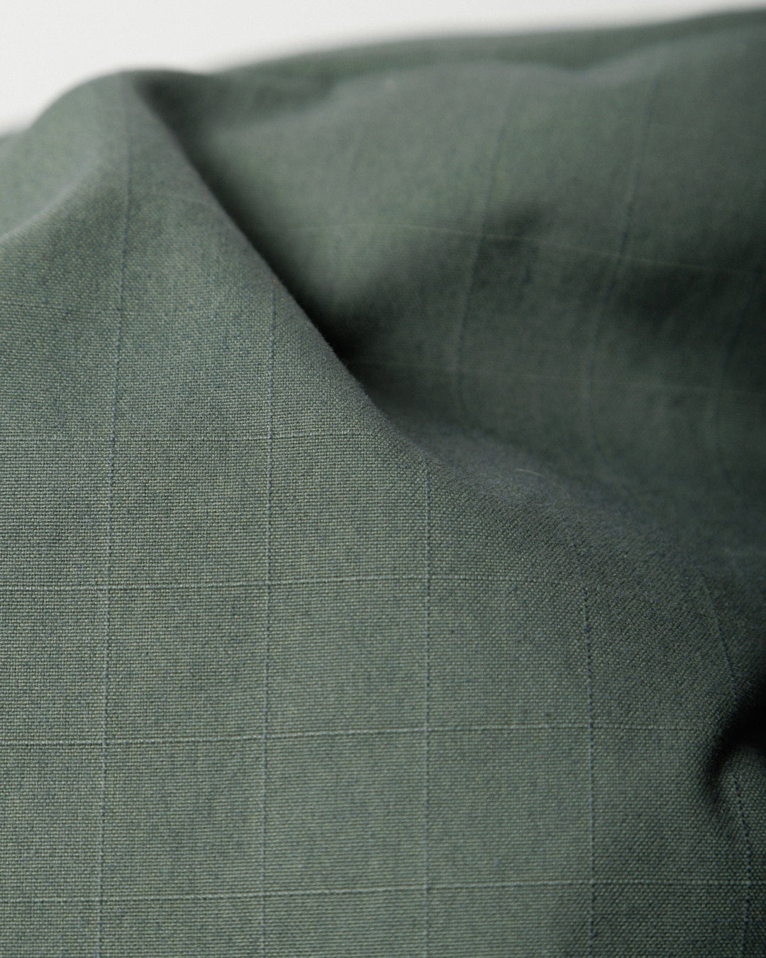 Crafted from organic large-grid ripstop fabric, woven and waxed in Scotland. This heavyweight textile offers exceptional water resistance and durability - the ripstop weave prevents tears from spreading, while the wax coating provides weather protection that improves with age and wear.