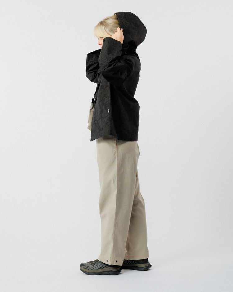 Our Black Ink Detachable Hood is the perfect complement to your Nell Jacket, combining functionality with sophisticated design. Crafted from the same premium Scottish dry-waxed cotton as the jacket, it ensures consistent protection and style. The innovative tyre panel design and double-layered construction offer superior coverage, while multiple adjustment points allow for a customized fit around your face. Attaches seamlessly to your Nell Jacket with discrete poppers.