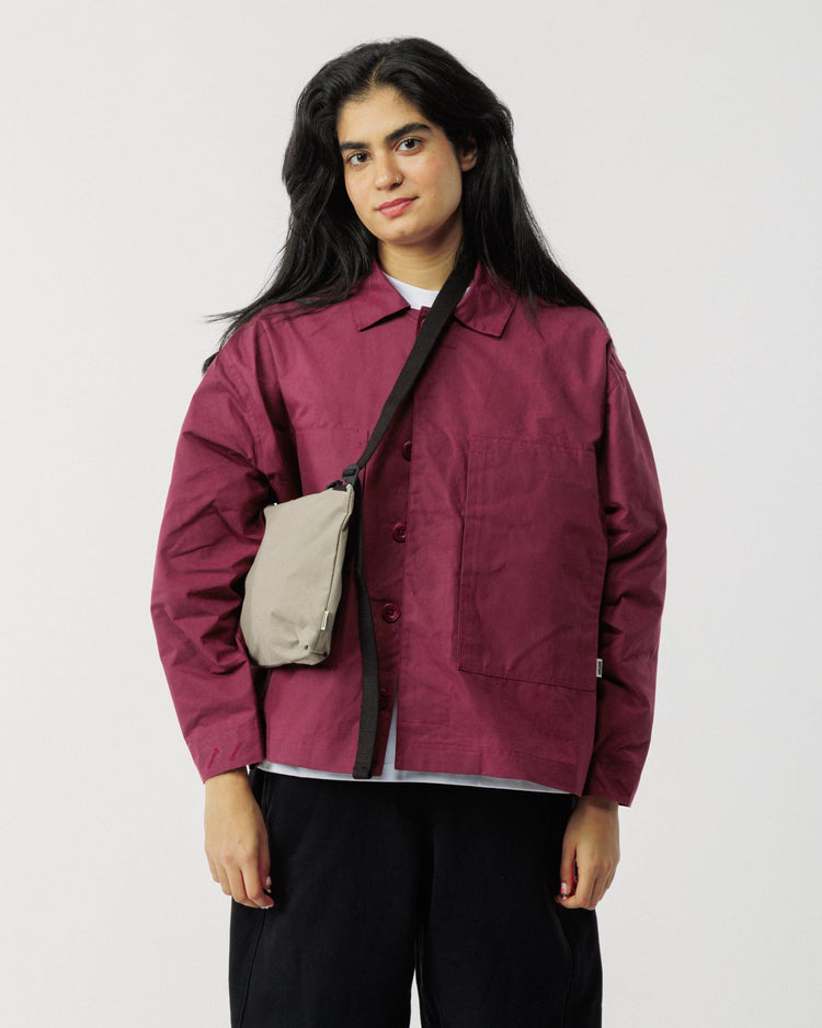 Our Burgundy Nell Jacket is a modern wardrobe essential, combining everyday practicality with refined detailing. Designed with a relaxed, boxy fit, it features an innovative five-pocket system, including double-layered check pockets and a discreet side-entry handwarmer for effortless functionality on the move.