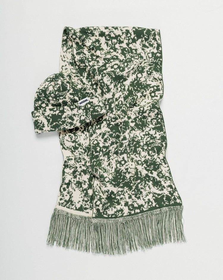 Wrap up in timeless comfort with the cosy Barley Hat & Scarf Set in khaki/natural, crafted from 100% soft, breathable cotton just up the road from our Manchester workshop. Designed to be worn together or separately, the set showcases our bespoke Barley jacquard pattern, woven directly into the fabric for a premium finish that’s lightweight, itch-free, and built to last.