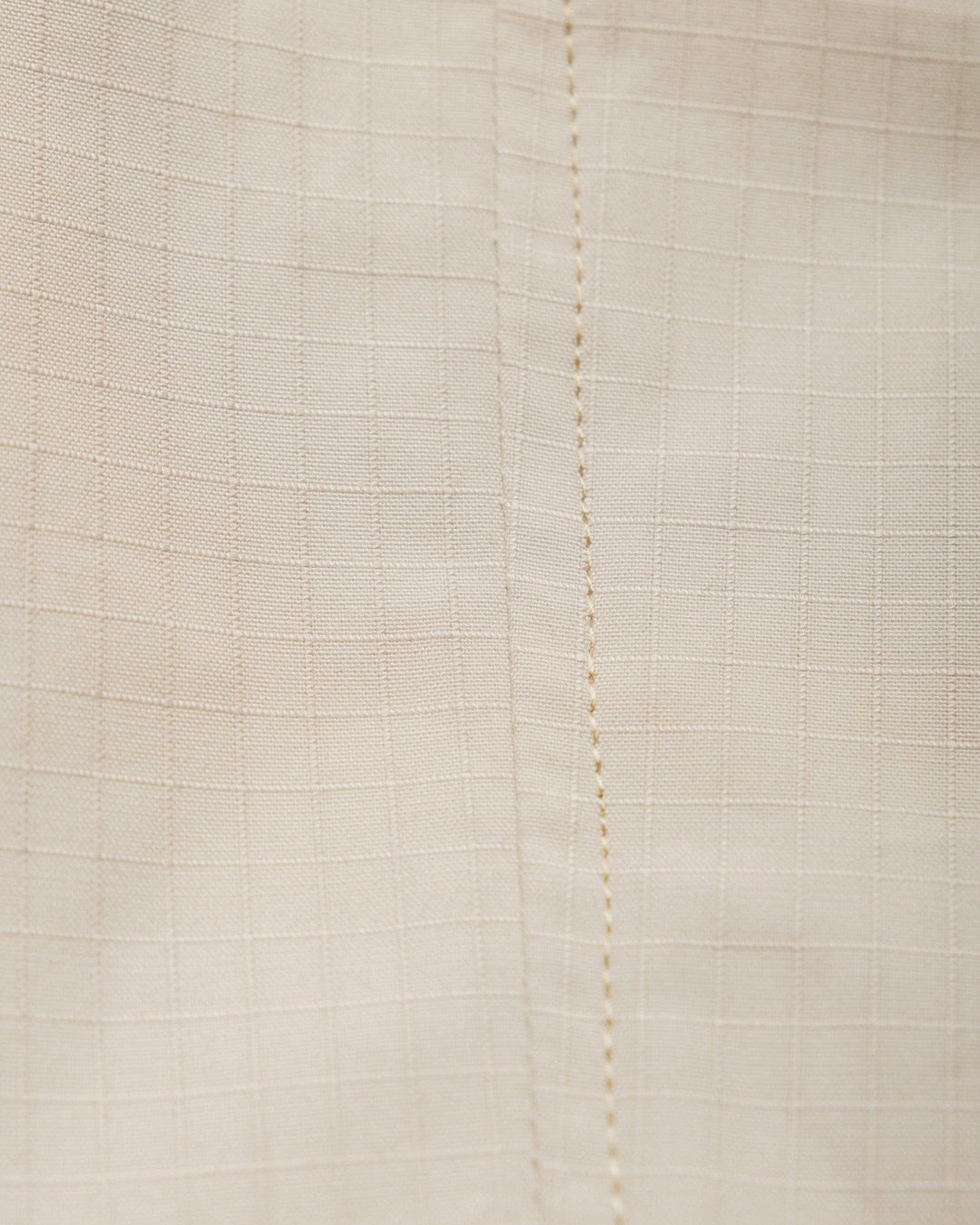 Constructed from durable organic cotton ripstop - the grid weave is designed not to run if snagged. The fabric is lightweight enough for summer, while still layering comfortably over thermals in colder months.