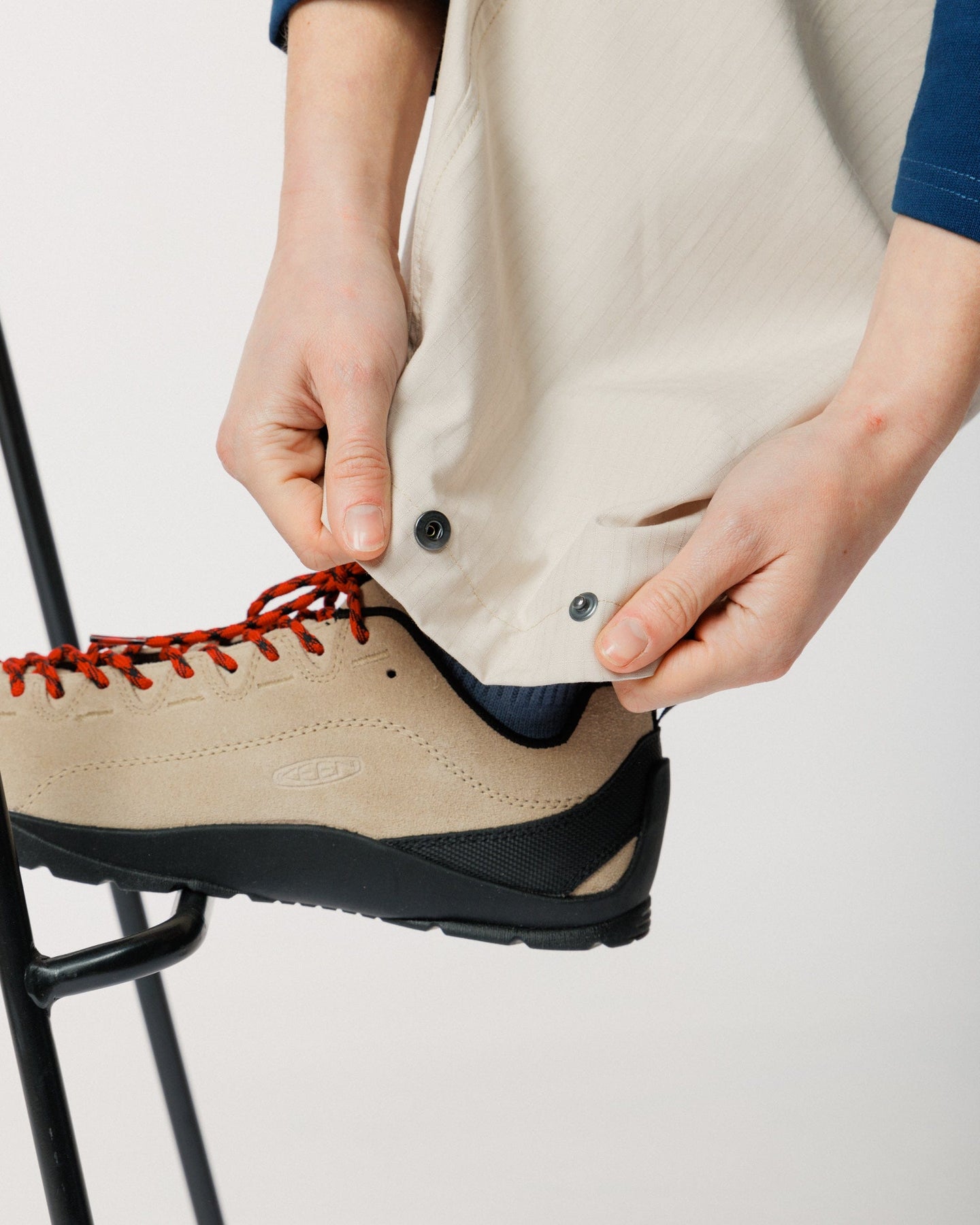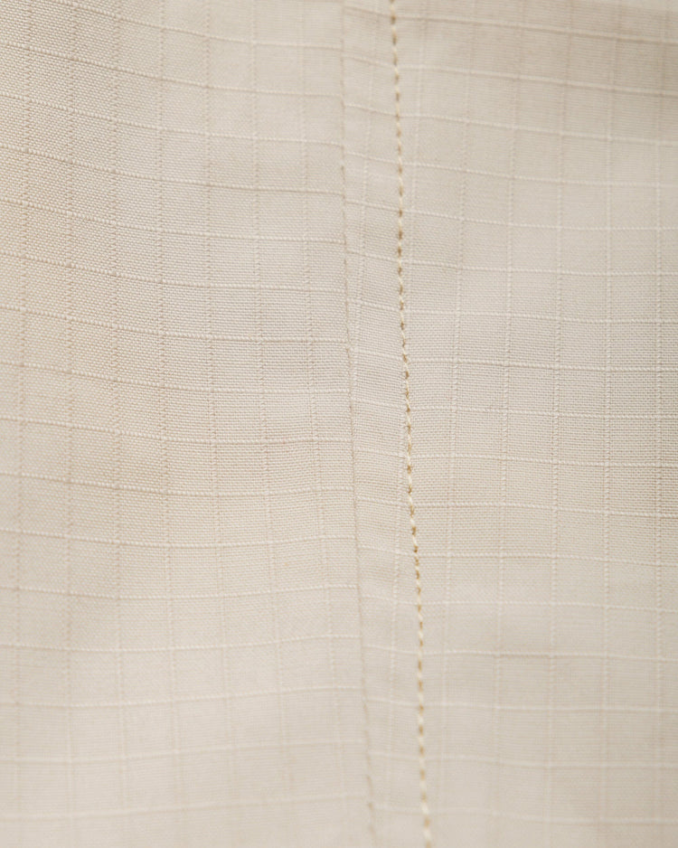 Crafted from durable organic cotton ripstop, finished with a subtle grid weave designed not to run if snagged. Easy through warmer months and comfortable layered over thermals when temperatures drop, it’s a year-round staple built for repeat wear.