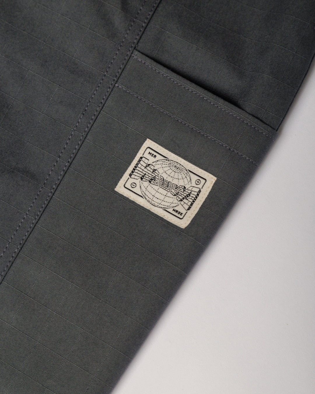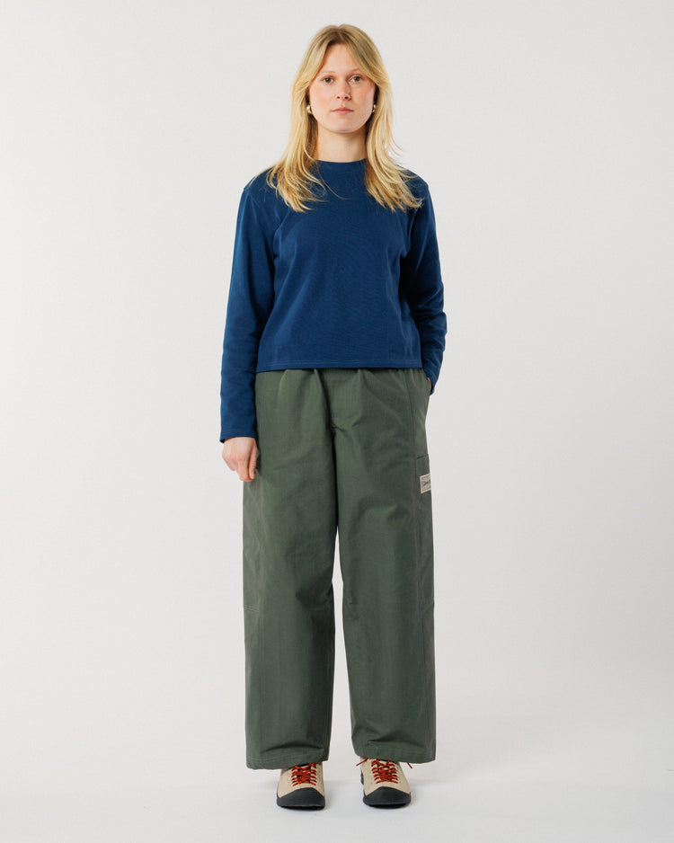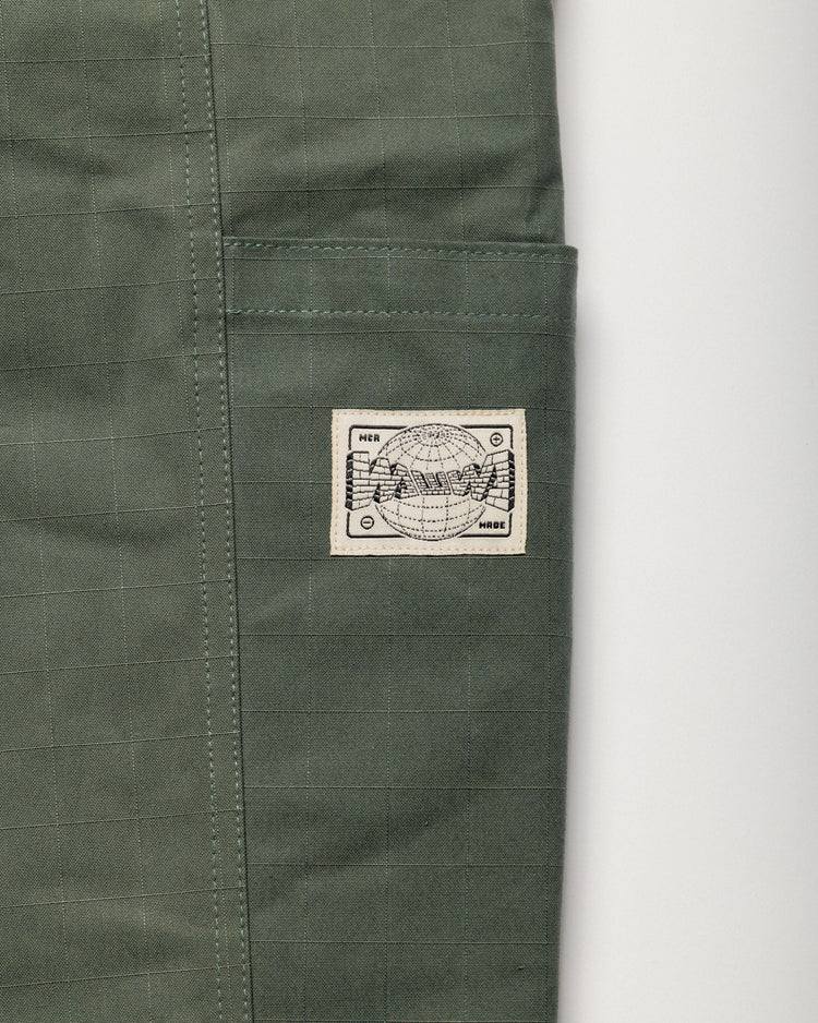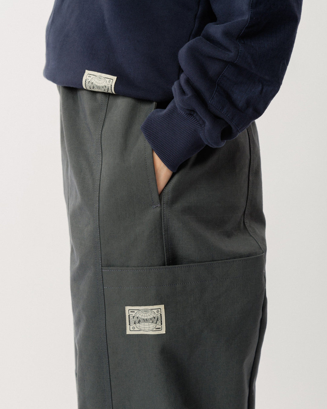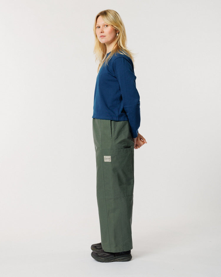 Built for the realities of studio life and beyond, the Water Resistant Studio Pant in mineral green takes our original Studio Pant and pushes it further. Crafted from water-resistant, dry-waxed organic cotton ripstop with a wide grid structure, these trousers offer added protection without sacrificing comfort or mobility. Tough and quietly technical, they’re designed to perform in changeable conditions while maintaining a clean, workwear aesthetic.