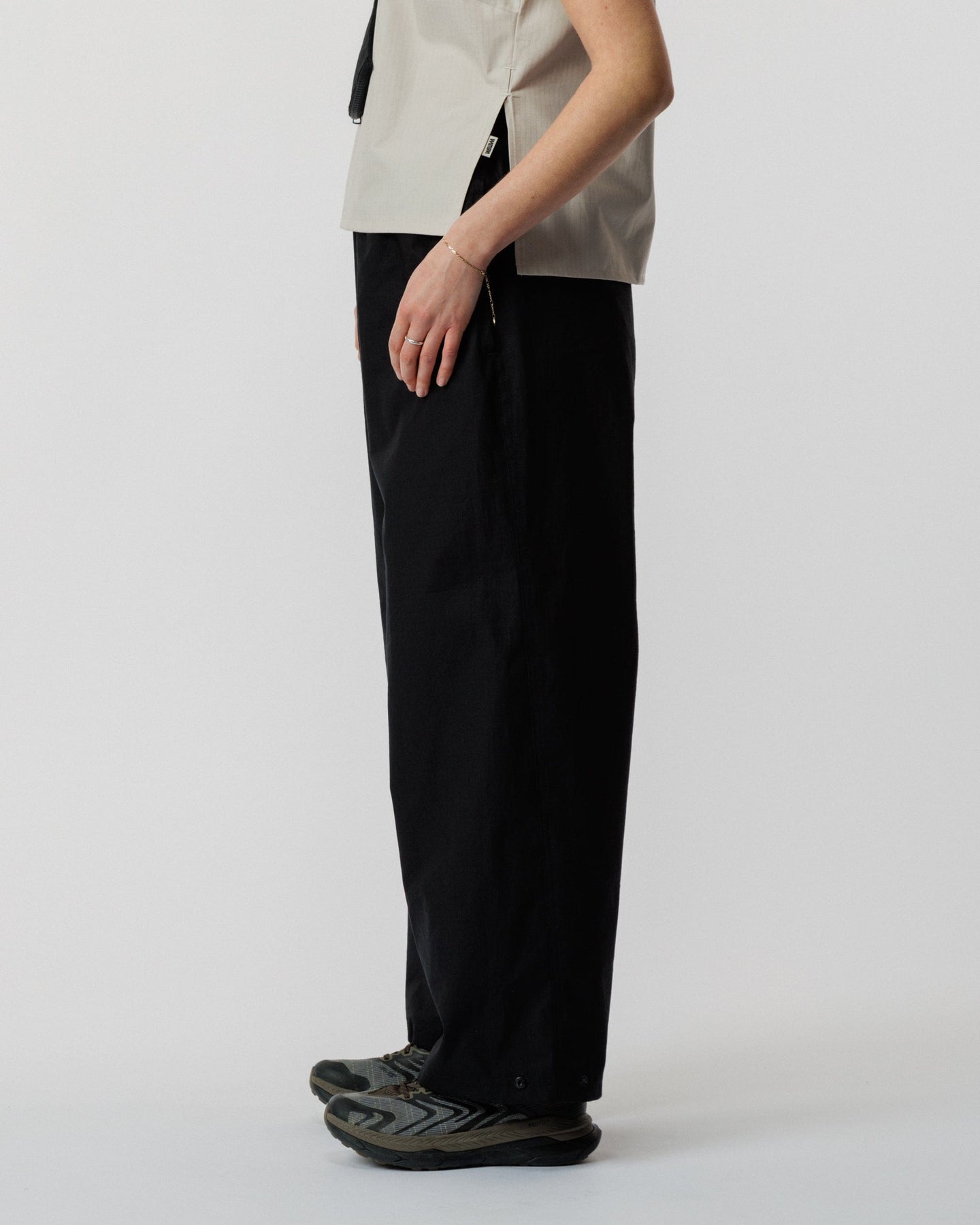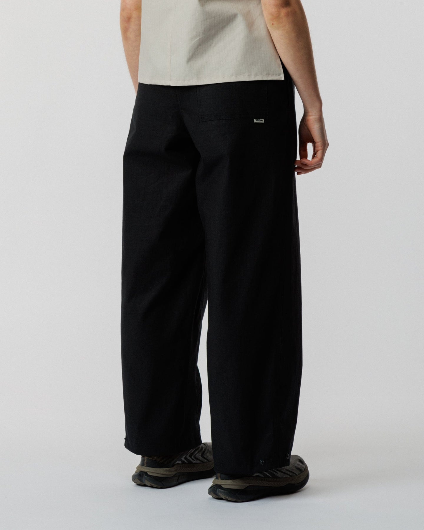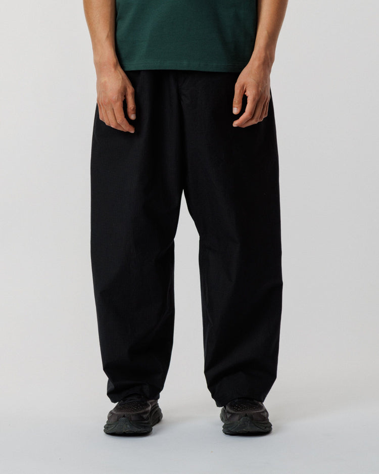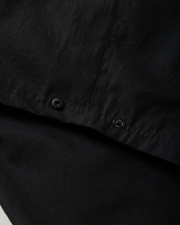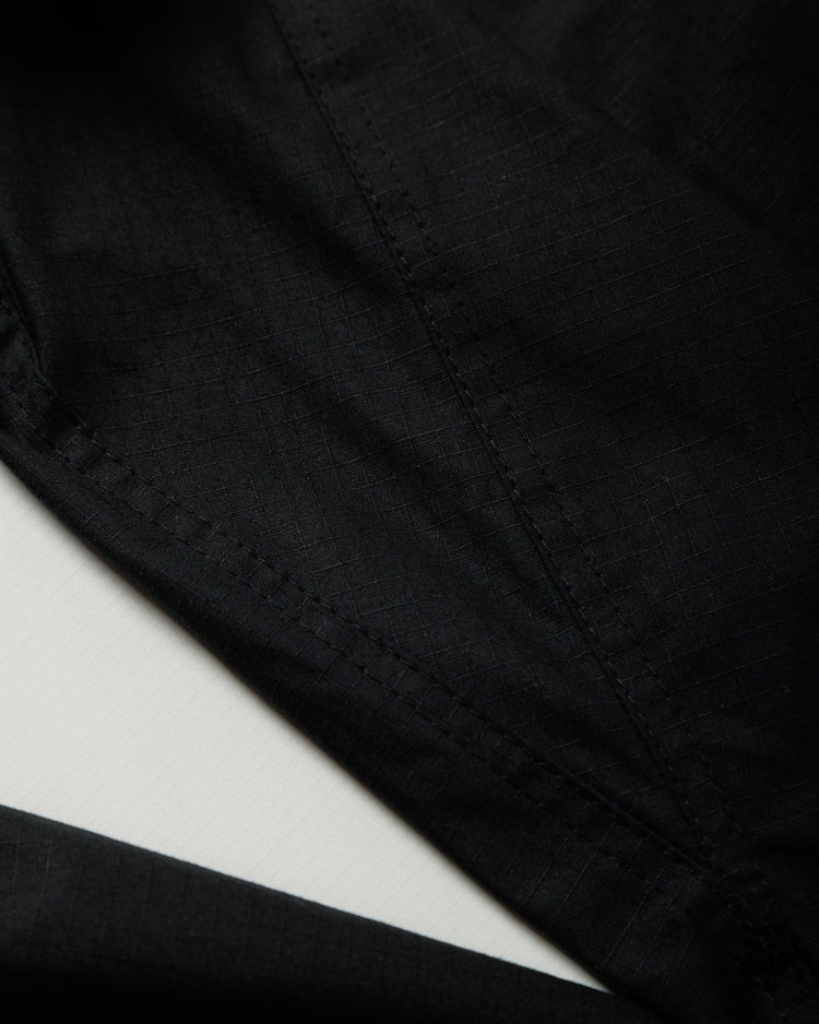 Crafted from lightweight organic ripstop cotton, the Ripstop Zama Pant in black embodies the ultimate workwear fabric philosophy. The innovative grid structure means if they ever tear during your explorations, rips will only travel in straight lines—making repairs simple and extending their lifespan.