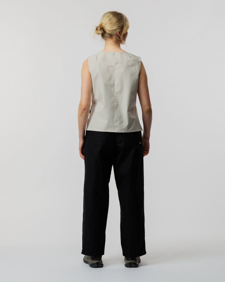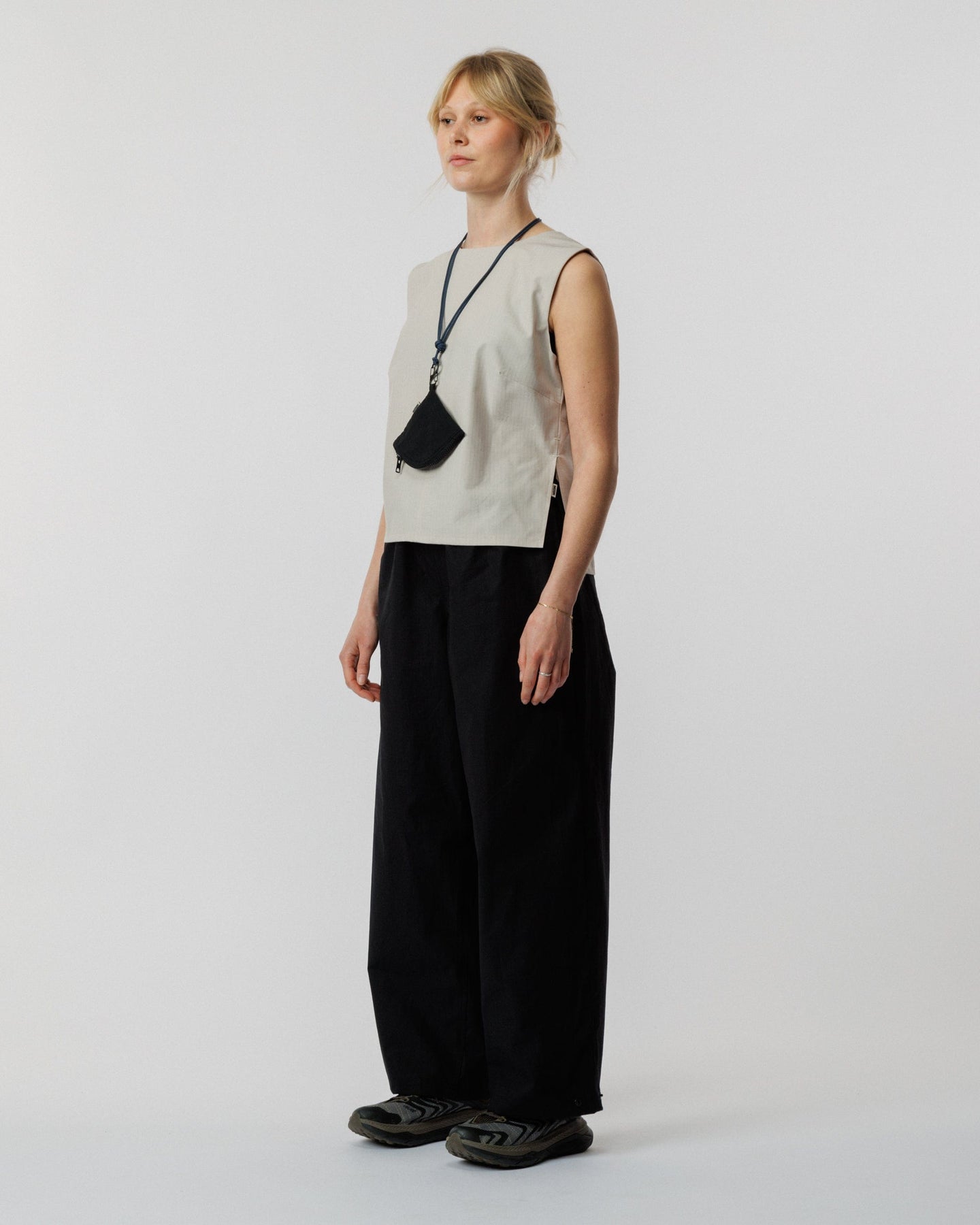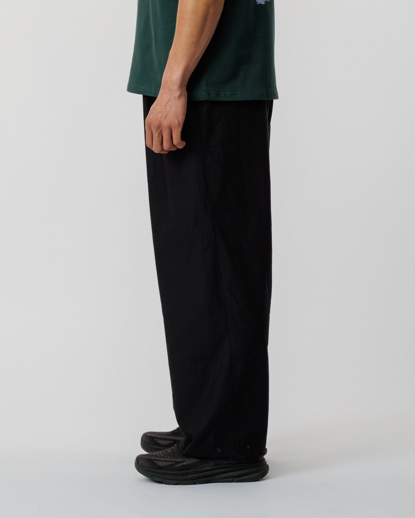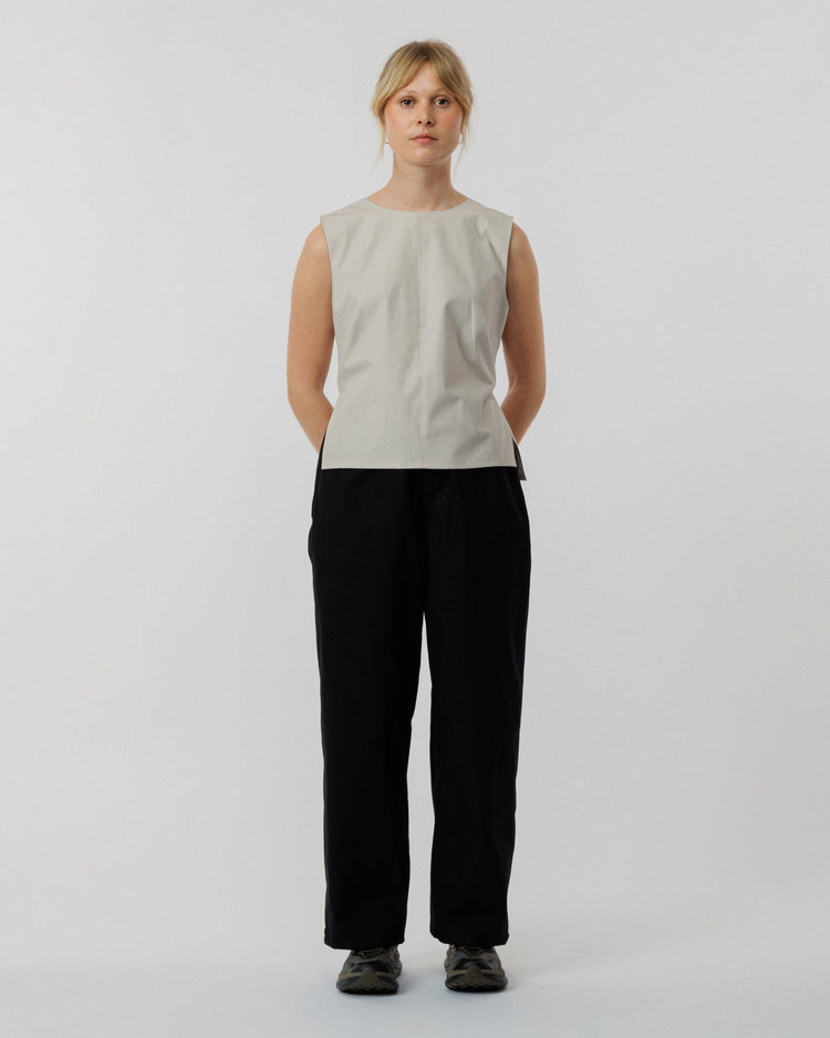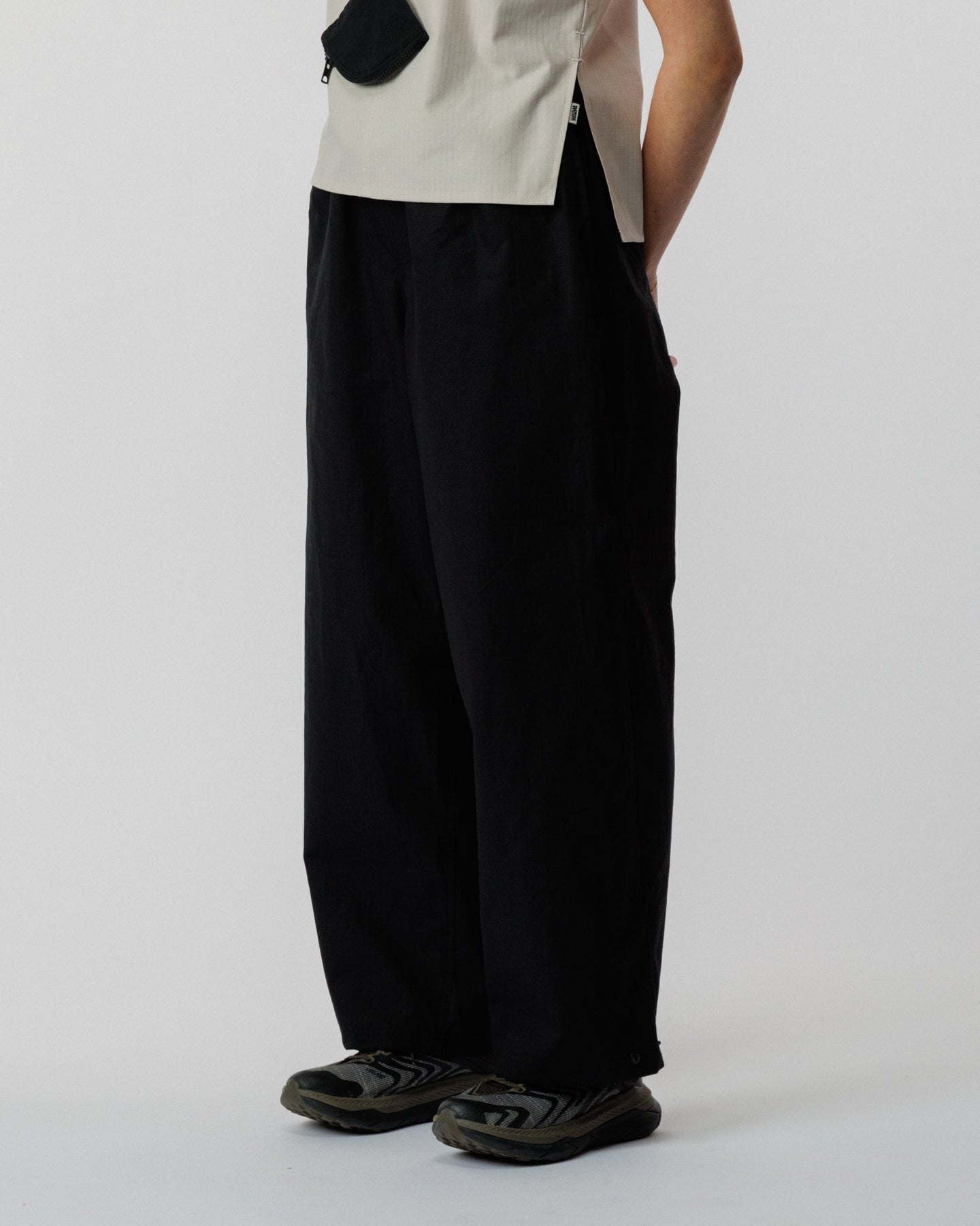 Crafted from lightweight organic ripstop cotton, the Ripstop Zama Pant in black embodies the ultimate workwear fabric philosophy. The innovative grid structure means if they ever tear during your explorations, rips will only travel in straight lines—making repairs simple and extending their lifespan.