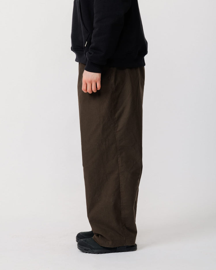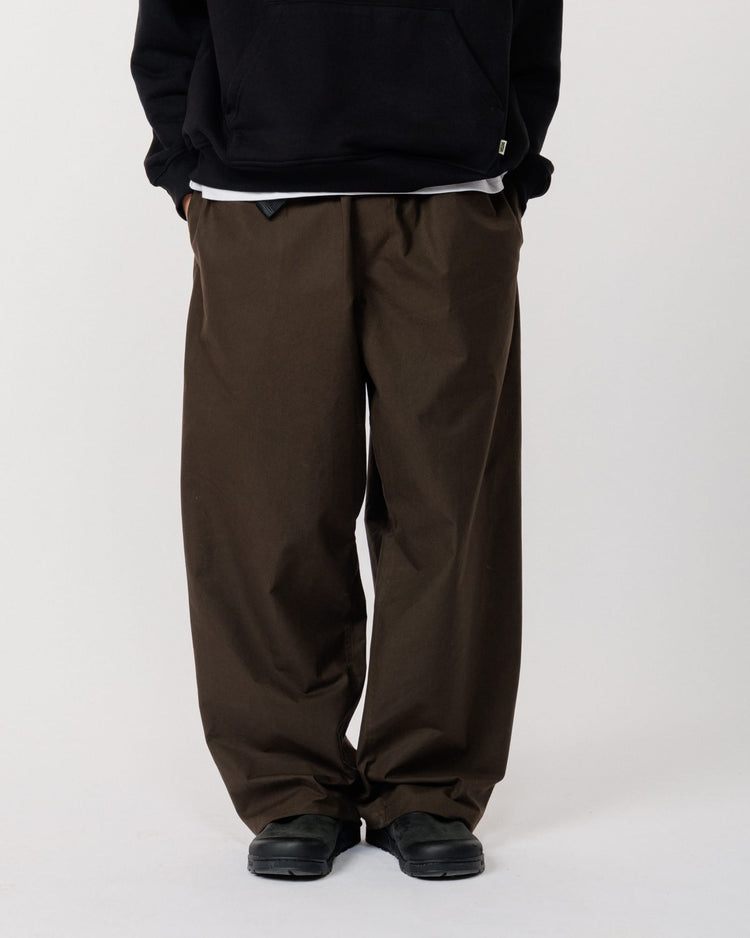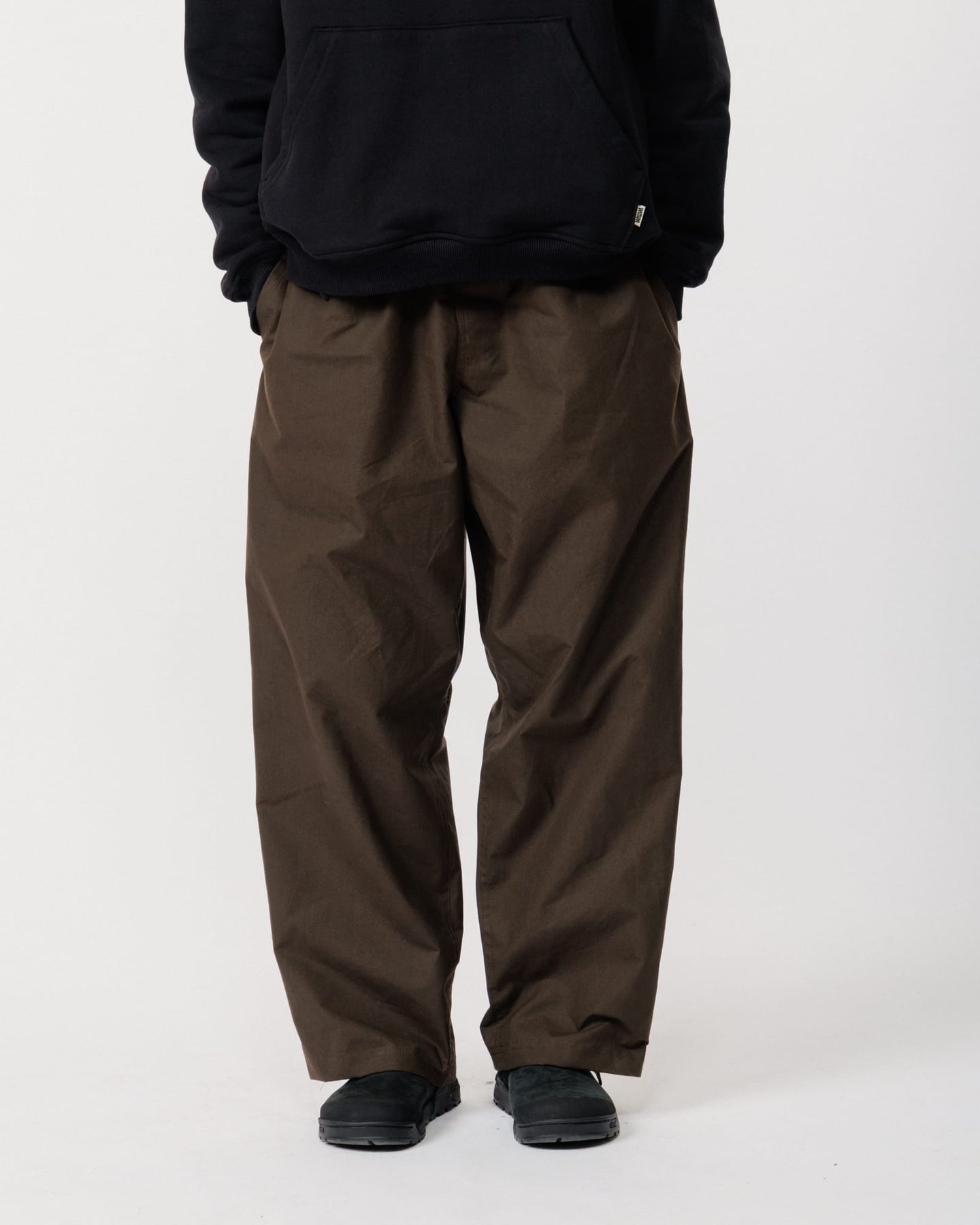 Crafted from cotton twill with a technical water-resistant finish, these pants are soft, structured, and effortlessly wearable. The wide leg silhouette and elasticated waistband create a relaxed, modern shape, while reinforced gussets ensure durability and enhanced ease of movement.
