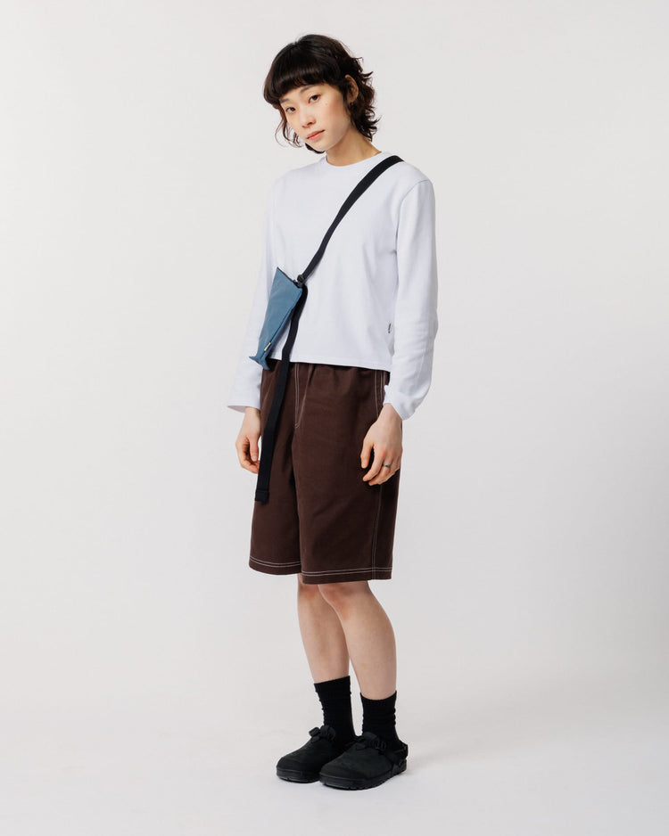 Our Zama Short gets a sharp upgrade. Same relaxed fit and organic cotton twill you know, now cut in brown canvas with white contrast stitching that gives them a clean, considered edge.